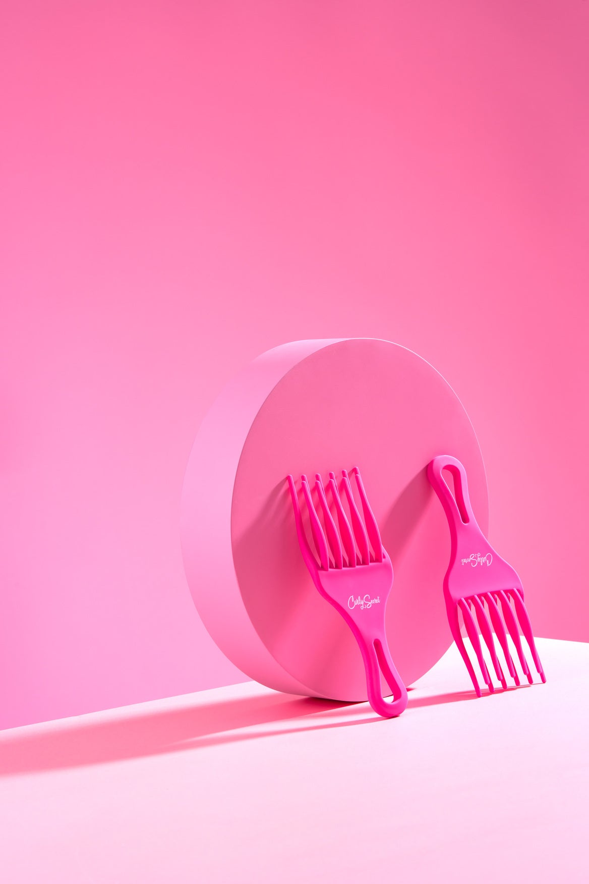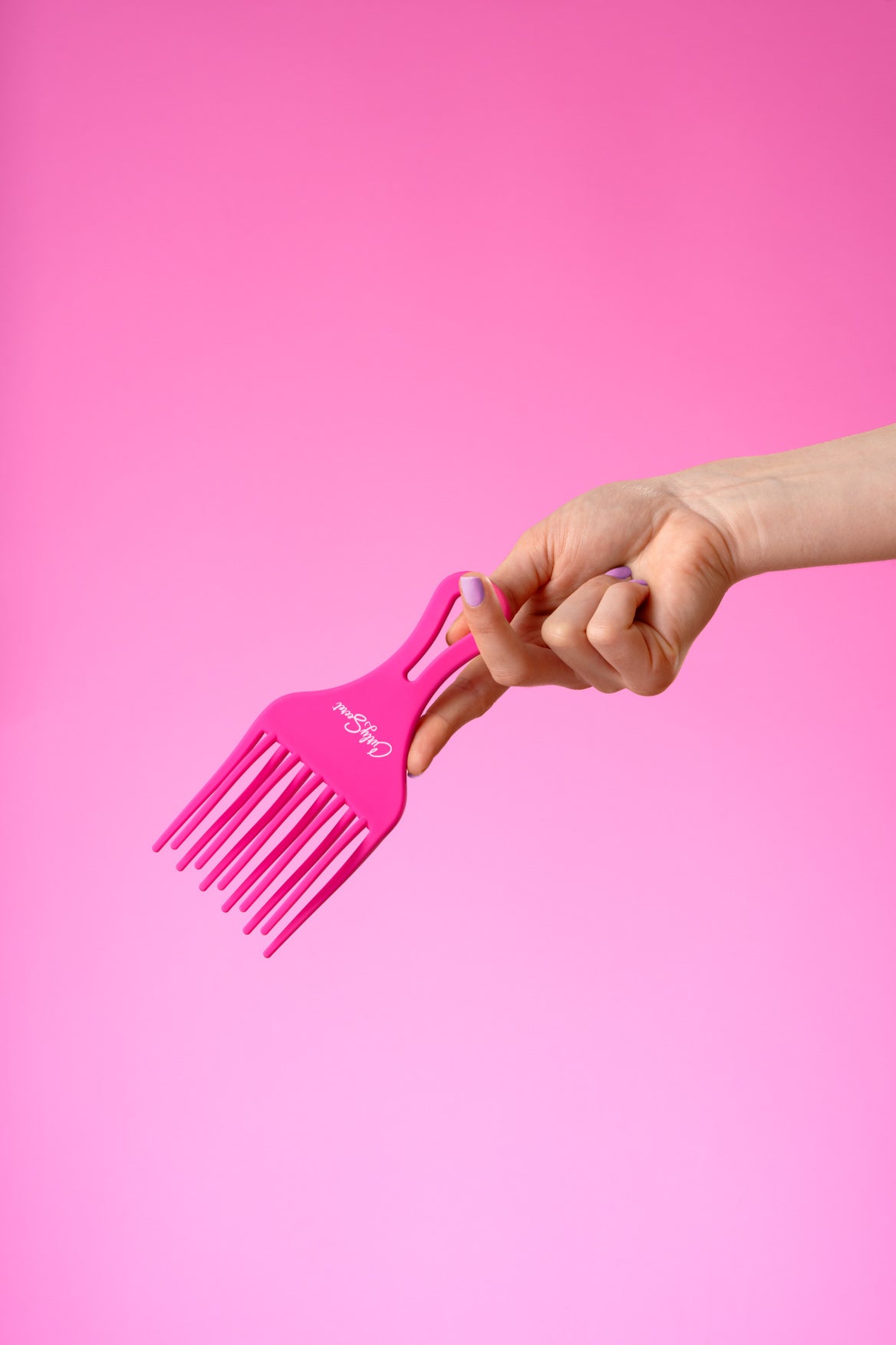 Once your hair is 100% dry, start at the roots and gently insert the Double Pick Lift comb into a section of your hair. Make sure both rows of teeth are penetrating the hair. Lift the comb upwards in a gentle, fluid motion, avoiding any tugging or pulling to prevent breakage. Move the comb from the roots and gently push upwards to lift your curls and create volume. You can do this in small subsections or in larger sections.